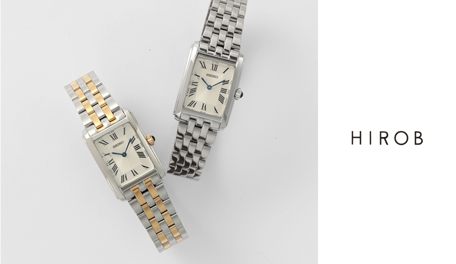 程よいサイズ感とシャンパンがかった柔らかなダイヤルが控えめな上品さを引き立てるデザイン。ミラー仕上げのレクタンギュラーケースは、光沢と透明感を放ちます。手元に華やかさと温かみを与えるコンビネーションモデルと、クリーンかつ知的なニュアンスを与えるシルバーモデル。
